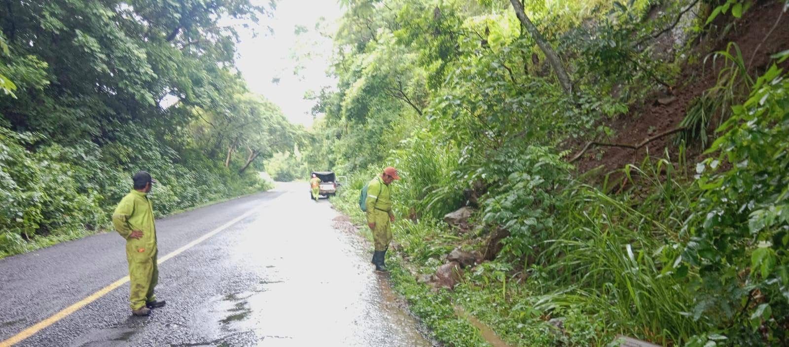 Una de las principales incidencias se registró sobre la carretera federal 185, en el tramo Sayula de Alemán–Matías Romero, a la altura de la gasolinera cercana a la subestación eléctrica. En el lugar ya operan cuadrillas de trabajo para estabilizar el terreno y liberar la vía.
