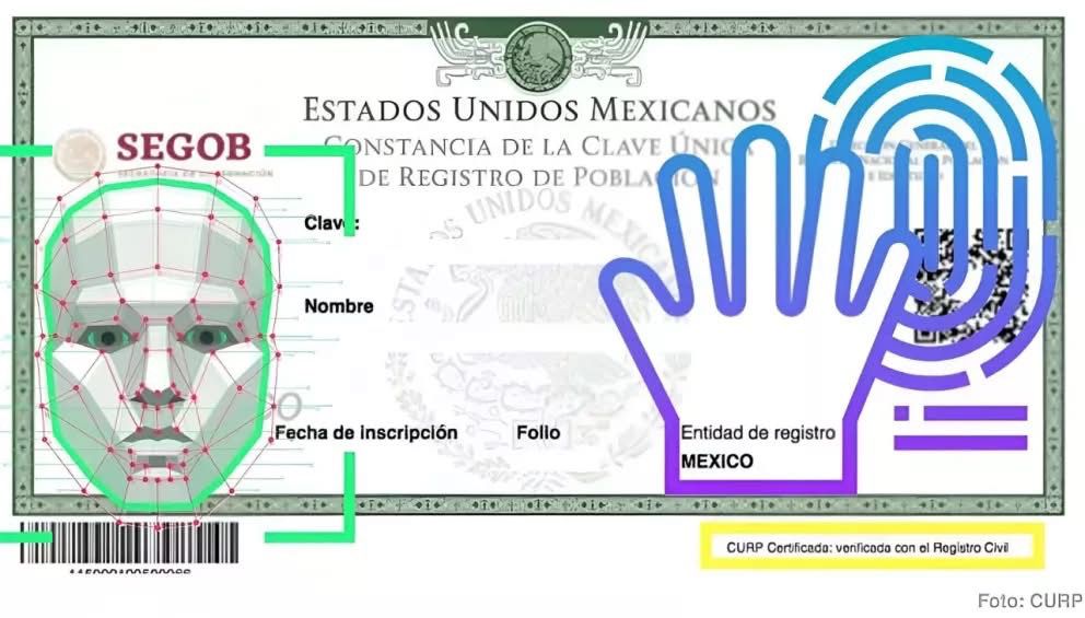 La CURP biométrica es una versión más avanzada del actual documento de identidad, que incluye no solo el código alfanumérico tradicional de 18 caracteres, sino también información biométrica como: