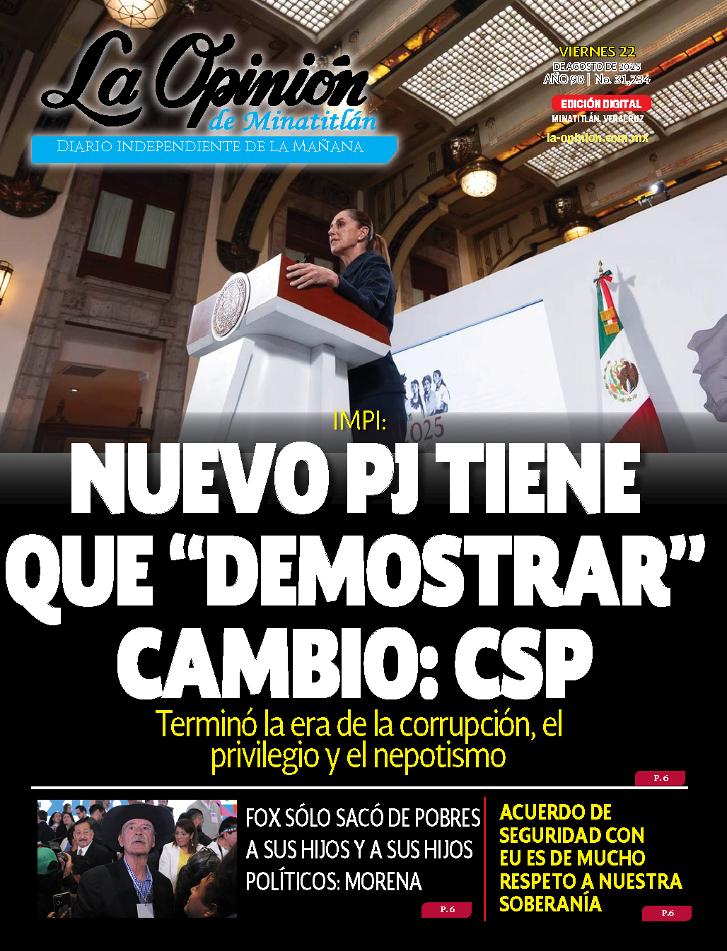 Comparte esto: Haz clic para compartir en Facebook (Se abre en una ventana nueva) Facebook Click to share on X (Se abre en una ventana nueva) X Me gusta esto:Me gusta Cargando... Relacionado Navegación de entradas 21 de agosto de 2025 | La Opinión de Minatitlán23 de agosto de 2025 | La Opinión de Minatitlán