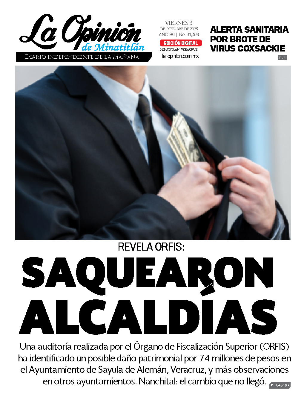 Comparte esto: Haz clic para compartir en Facebook (Se abre en una ventana nueva) Facebook Click to share on X (Se abre en una ventana nueva) X Me gusta esto:Me gusta Cargando... Relacionado Navegación de entradas Playa Vicente cierra el 2024 con finanzas municipales impecables: ORFIS no detecta irregularidades.4 DE OCTUBRE DE 2025 | LA OPINIÓN DE MINATITLÁN