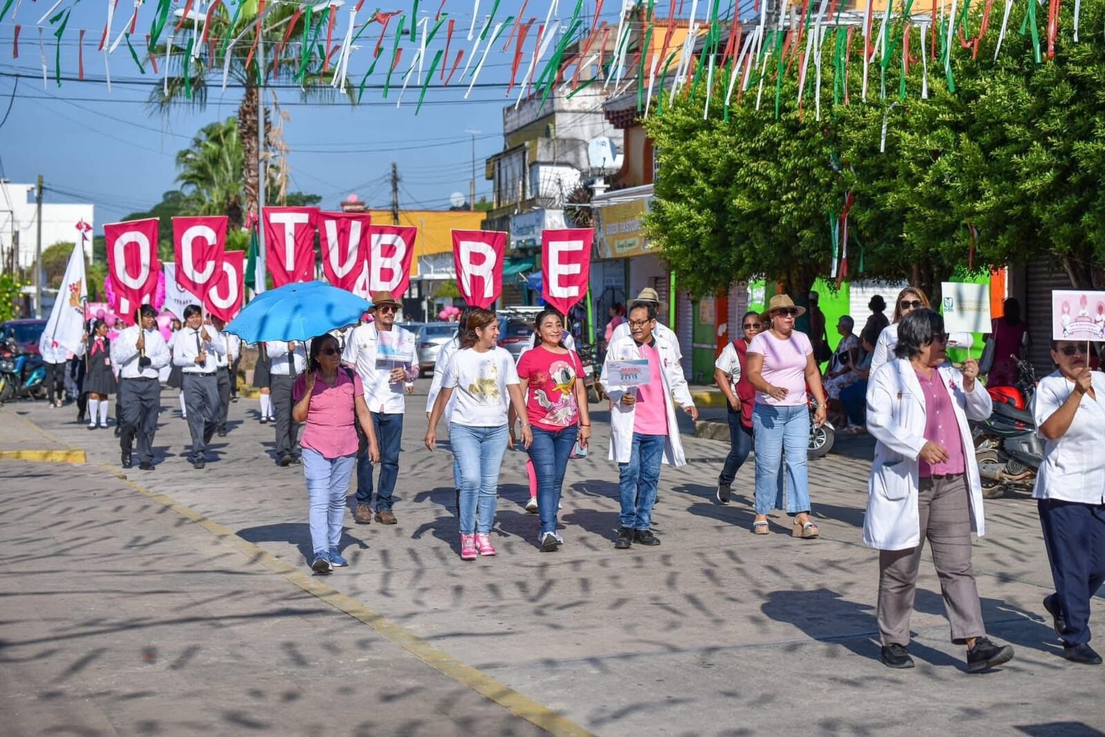 Oluta, Veracruz, viernes17 de octubre de 2025. | En el marco del Mes de la Sensibilización sobre el Cáncer de Mama, autoridades municipales, personal del Ayuntamiento y ciudadanía en general participaron en una caminata simbólica por las principales calles de Oluta, con el propósito de promover la prevención y la detección temprana de esta enfermedad.