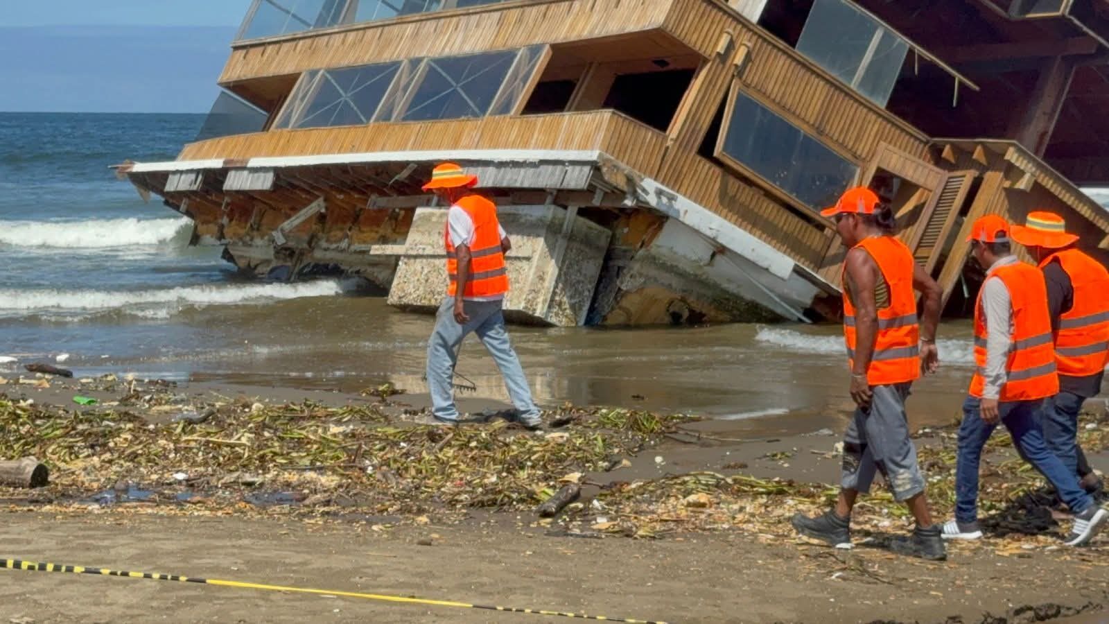 Casi dos décadas después de haberlo construido, los carpinteros tuxpeños que dieron vida al restaurante flotante “El Atracadero” regresaron para iniciar su desmantelamiento. El segundo módulo de la estructura, arrastrado por las corrientes marinas hasta las playas de Coatzacoalcos, comenzó a ser desmontado esta semana.